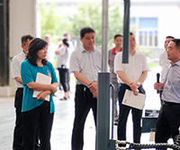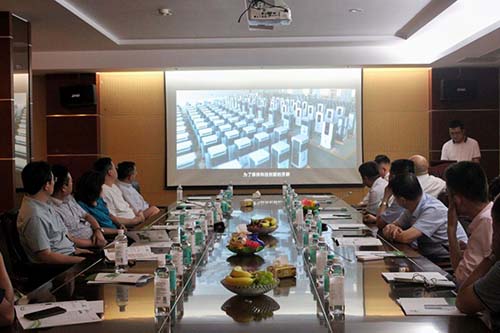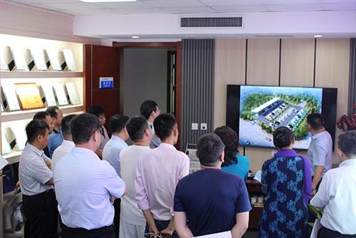 董事長朱本申向考察團講解激光整平機發展