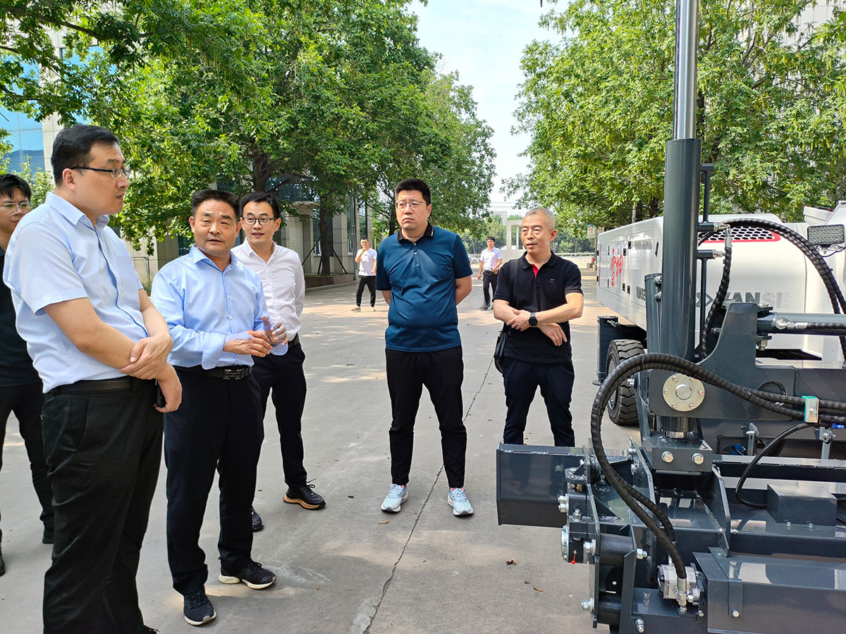 調研組領導及張局長先后對萬世混凝土激光整平機、萬輝充電樁、萬利數控圓鋸機、萬順路橋以及萬世工拓鎧裝縫進行了視察,視察過程中,董事長朱本申向各領導詳細介紹了公司的發展歷程、技術革新、產品開發、生產經營情況及發展目標規劃,領導對此給予了高度的評價和認可。