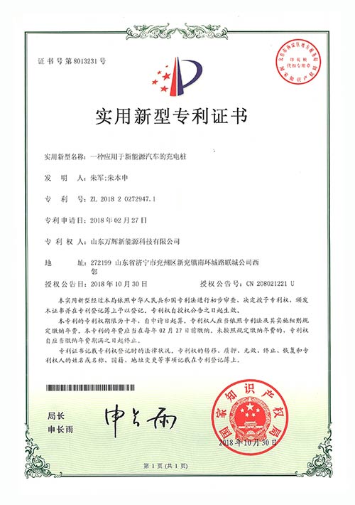 榮譽資質-實用新型專利證書