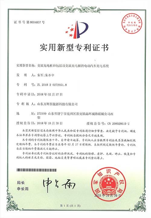 新能源汽車充電樁榮譽資質(zhì)
